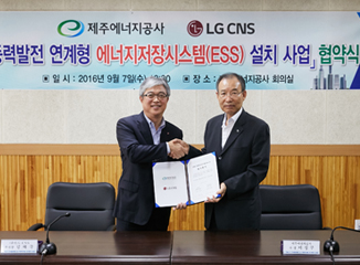 LG CNS는 제주에너지공사가 발주한 제주 최대 규모(27MWh) ‘풍력발전 연계형 에너지저장시스템(ESS: Energy Storage System 이하 ESS)’ 설치 • 운영 사업자로 선정됐다.이번 사업은 제주에너지공사의 동복 • 북촌풍력단지(18MWh), 가시리풍력단지(9MWh)를 대상으로 ‘풍력연계형...